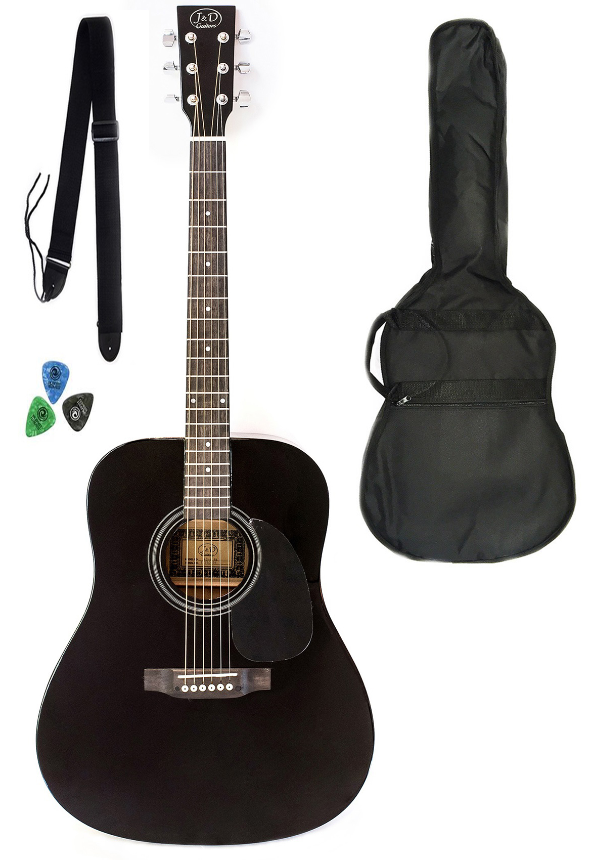 Jack and Danny AG-6 BK BLACK Ακουστική κιθάρα με δώρο θήκη, ζώνη, πένες, Jack and Danny