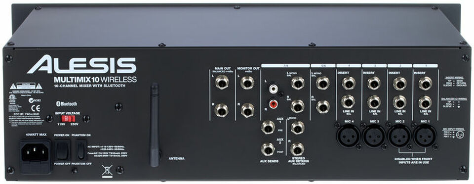 The Alesis MultiMix 10 Wireless is redefining the rackmount mixer category. Compact and complete, the MultiMix 10 Wireless delivers ten-channel mixing in a neat 3U package that is perfect for smaller clubs and venues, houses of worship, as well as mobile/traveling systems. The MultiMix 10 Wireless benefits from an array of easily accessible front panel jacks that enhance the versatility and usefulness of this generously equipped mixer. Topping off the feature list is a channel dedicated to receiving the stereo playback from any Bluetooth device. The MultiMix 10 Wireless is a new breed of rackmount mixer.