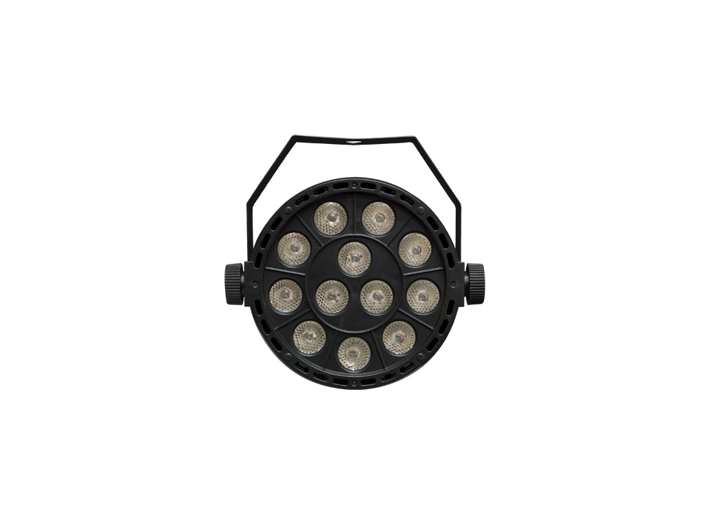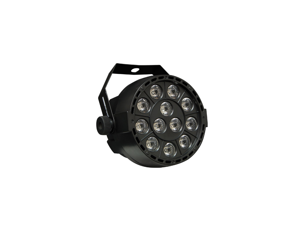 Main supply: AC 220-240V, 50/60 Hz. Consumption: 40W. LEDs: 12X3W RGB (3in-1) Functions: DMX, Auto-run, Sound, Master/Slave. DMX Channels: 7 Channels. Dimensions: 120 X 120 X 90 mm.