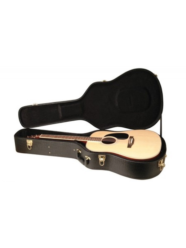 This hardshell guitar case is sized to fit most dreadnought and folk guitars, providing protection and transporting ease. Constructed from quality materials, the interior is custom molded and provides full neck support. The interior also features a soft plush lining and an accessories compartment, perfect for picks and capos.
