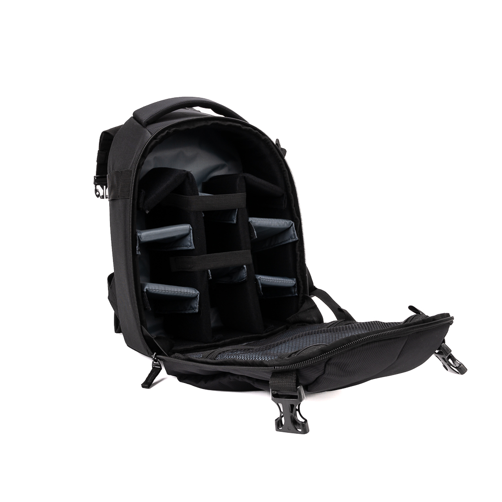 The Caruba Skydex 120 has a very ergonomic design with comfortable carry and chest straps with a quick fastener. Thanks to this, the weight is optimally divided and you can carry the bag for a long time without it being uncomfortable. The backside of the backpack is made of soft and breathing material. A loop is present for transporting a tripod.