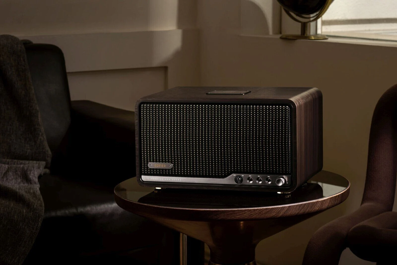 Ρετρό Σχεδιασμός Συναντά Μοντέρνο Στυλ Το EDIFIER S300 συνδυάζει τη ρετρό γοητεία με τη σύγχρονη πινελιά. Με χειροποίητο ξύλινο περίβλημα, πλεγμένη μάσκα ηχείου και κομψά μεταλλικά χειριστήρια, ο διαχρονικός σχεδιασμός του συμπληρώνει εύκολα τη διακόσμηση κάθε δωματίου. Ακουστική Αρχιτεκτονική Hi-Fi Μέσα στο κομψό περίβλημα, δύο tweeter τιτανίου θόλου 1,25" με μαγνήτες νεοδυμίου και ένας οδηγός μεσαίων-χαμηλών συχνοτήτων από αλουμίνιο 5,5" με διάφραγμα αλουμινίου μεγάλης απόστασης προσφέρουν μια πλούσια ηχητική εμπειρία. Το περίβλημα από MDF μειώνει τον συντονισμό και την παραμόρφωση, ενώ η θύρα bass reflex μεγάλης διαμέτρου μεταβλητής καμπυλότητας βελτιώνει την απόδοση στις χαμηλές συχνότητες. Μαζί, παράγουν έξοδο 80W RMS με καθαρές υψηλές συχνότητες, λεπτομερείς μεσαίες συχνότητες και δυνατά μπάσα. Επεξεργασία ήχου υψηλής ανάλυσης Απολαύστε ήχο υψηλής ποιότητας με ολοκληρωμένη ψηφιακή επεξεργασία σήματος 24-bit/96kHz. Το αναλογικό μπροστινό μέρος υποστηρίζει τη μετατροπή αναλογικών σημάτων σε ψηφιακά στην ίδια υψηλή ανάλυση. Είτε χρησιμοποιείτε τη θύρα AUX για αναλογική είσοδο είτε για ψηφιακή ροή μέσω USB-C ή Bluetooth, το S300 εξασφαλίζει ακριβή μετατροπή σήματος και πιστή αναπαραγωγή ήχου. Προηγμένη συνδεσιμότητα Bluetooth Εξοπλισμένο με Bluetooth 5.4 και υποστήριξη για τον κωδικοποιητή LDAC, το S300 επιτρέπει streaming υψηλής ανάλυσης έως και 990kbps από συμβατές συσκευές Android (Android 8.0 ή νεότερη έκδοση). Υποστηρίζει επίσης την ταυτόχρονη σύνδεση δύο συσκευών Bluetooth, διευκολύνοντας την απρόσκοπτη εναλλαγή μεταξύ πηγών ήχου. Συμβατότητα με Apple AirPlay Με Wi-Fi διπλής ζώνης 5GHz και 2,4GHz, το S300 υποστηρίζει Apple AirPlay 2. Μεταδώστε μουσική χωρίς κόπο από τις συσκευές iOS, την Apple TV ή τον υπολογιστή σας με δυνατότητα iTunes. Μπορείτε επίσης να ομαδοποιήσετε πολλά ηχεία S300 για μια συγχρονισμένη εμπειρία ακρόασης σε πολλά δωμάτια. Διαισθητικοί έλεγχοι Ελέγξτε εύκολα τη μουσική σας με τα ενσωματωμένα κουμπιά.
