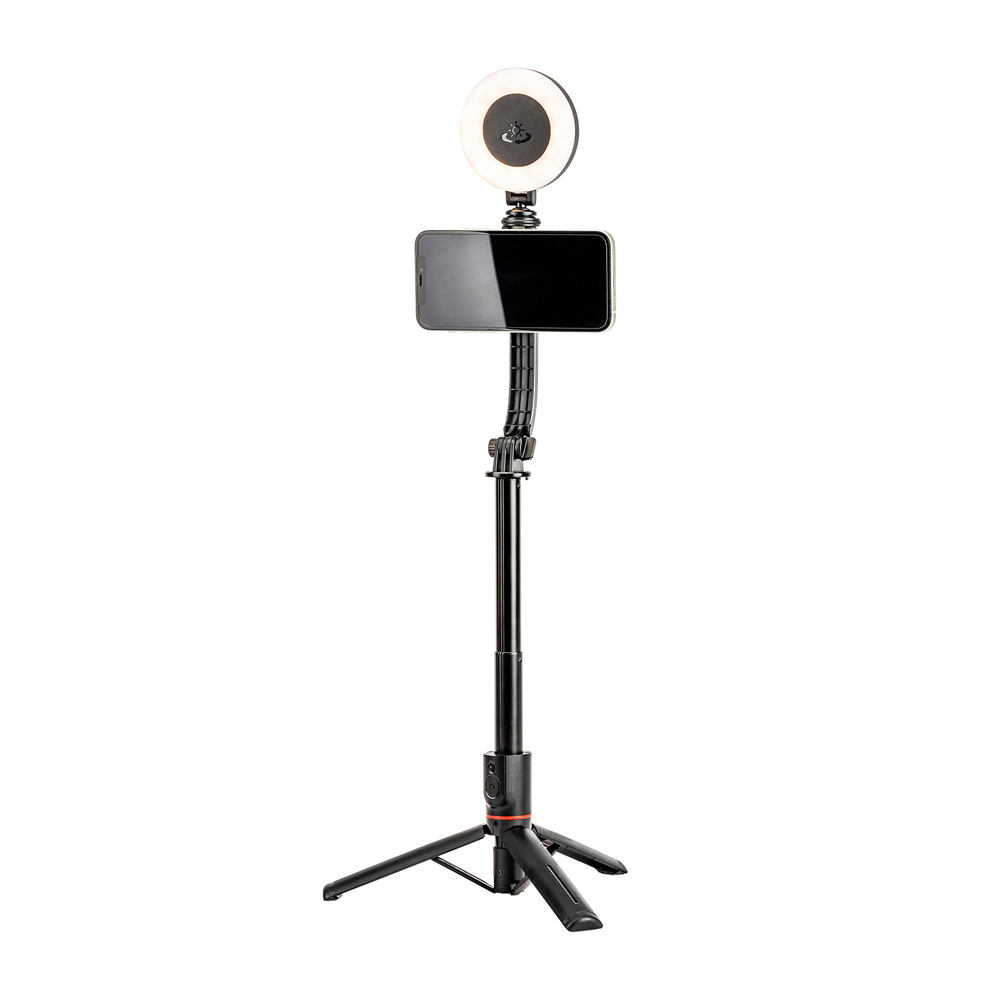 The tripod comes with a phone holder with a magnetic ring for smartphones. Snap your phone onto it and get started right away.