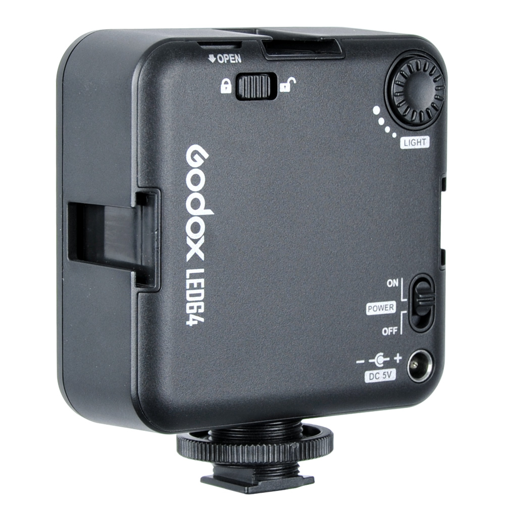 The Godox LED 64 is equipped with 64 bright LEDs excellent for macro photography, product photography and video recording. This lightweight and portable LED lamp offers high brightness and an accurate color temperature. It is possible to connect several LED 64 lamps together for a larger light surface. The LED 64 is powered by 4 AA batteries and the brightness is continuously adjustable so that you can adjust the amount of light to your wishes.