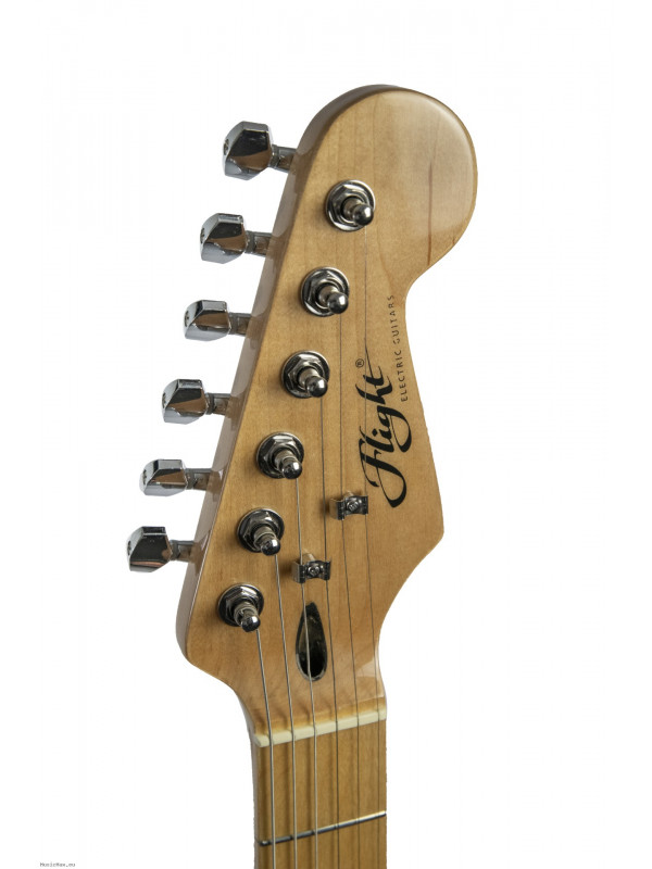 Flight EST13 V2; guitar suitable for beginners and all those who enter the world of electric guitars. A classic "stratocaster" shape that offers a great feel for playing . Configuration of 3 single coil magnets that also conquers more demanding guitarists.