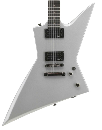 Explorer σώμααπό agathis bolt on με maple neck και τριανταφυλλιά ταστιέρα με 22 extra jumbo τάστα . Μαγνήτες LH-100 της ESP, μαύρα μεταλλικά μέρη και χρώμα Silver.