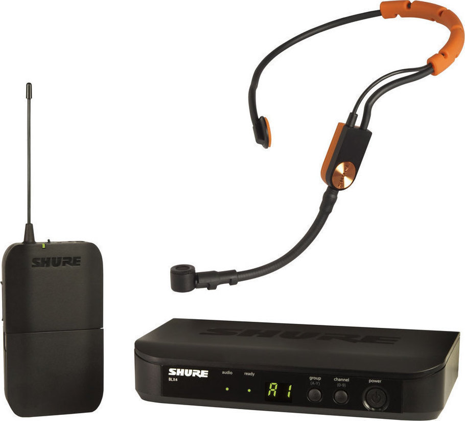 H8 Frequency Band, BLX4 Single-Channel Wireless Receiver, BLX1 Bodypack Transmitter, SM31FH, Fitness Headset Microphone, One-Touch QuickScan Frequency Selection, Internal Antenna Diversity, 300' Operating Range, Batteries Included.