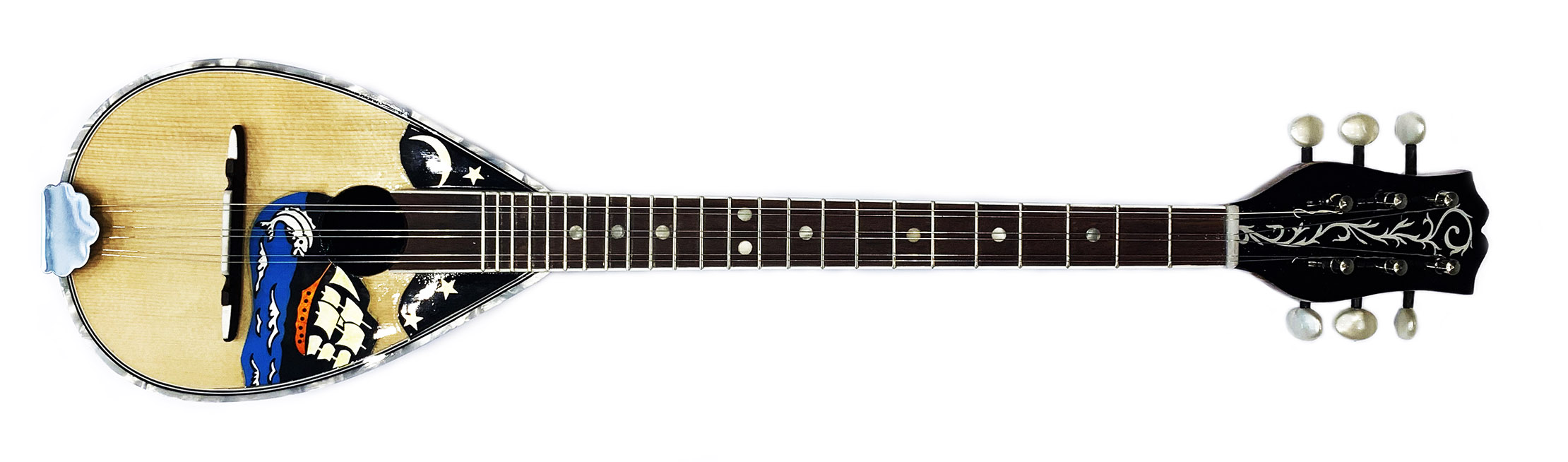 Παραδοσιακός χειροποίητος μπαγλαμάς με σκάφος 20 ντούγιες, από διαλεχτή καρυδιά, με καπάκι από μασίφ ελληνικό έλατο και φινίρισμα σατινέ.. Τα κλειδιά είναι nickel και το φινίρισμα είναι γυαλιστερό.