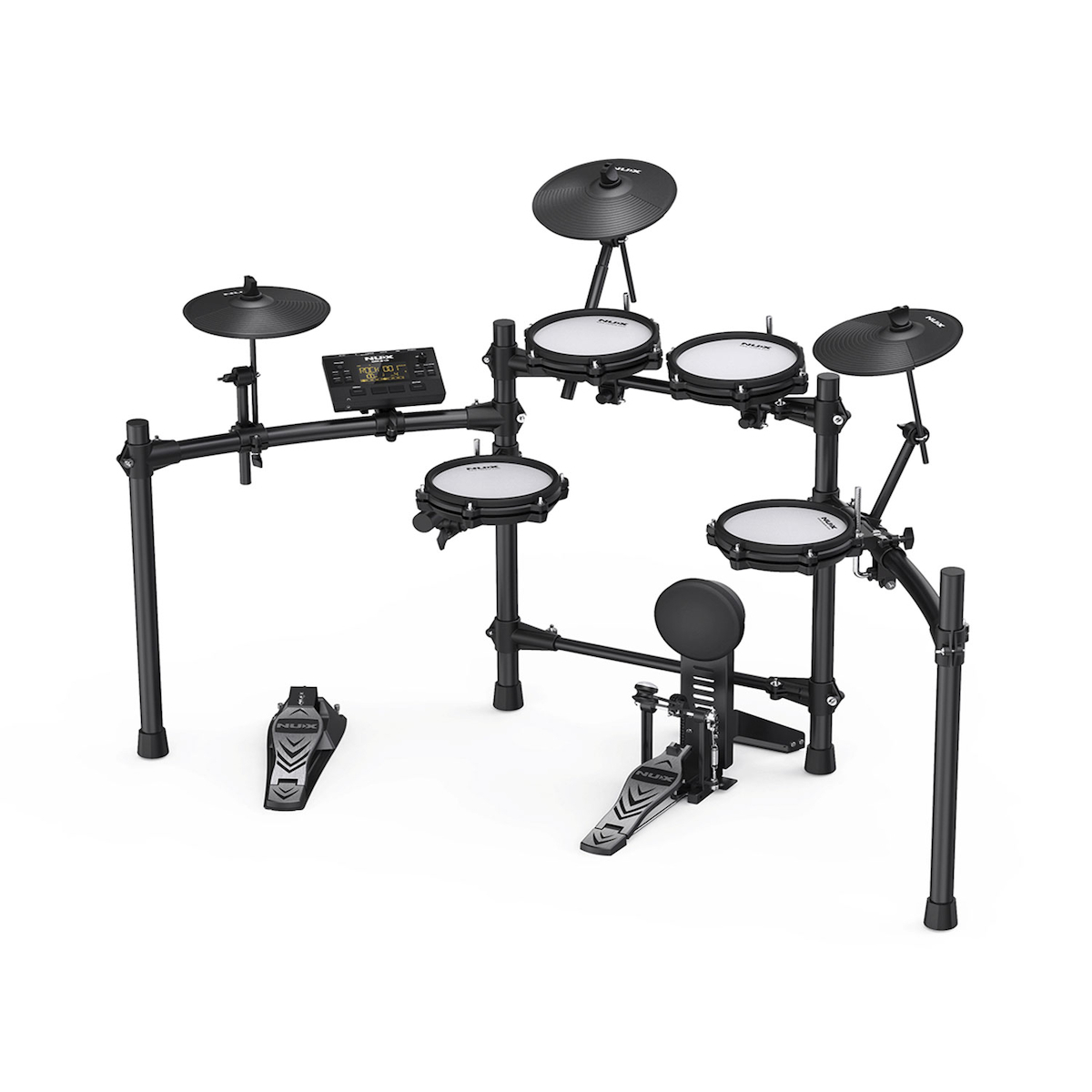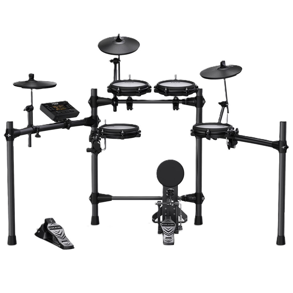 Αν είστε λάτρης των ντραμς και δεν υπάρχει αρκετός χώρος για ακουστικά τύμπανα και δεν θέλετε να ενοχλείτε τους γείτονές σας, τότε είναι το ηλεκτρονικό Drum Set Nux DM-210 είναι η κατάλληλη επιλογή. Το DM -210 είναι ένα σετ ηλεκτρικών τυμπάνων εξοπλισμένο mesh drum pads. Μπορείτε εύκολα να προσαρμόσετε την τέλεια αίσθηση για το στυλ σας, ρυθμίζοντας τα meshpads. Το ανεξάρτητο kick-drum είναι ειδικά σχεδιασμένο για το DM-210 και σας προσφέρει μια ρεαλιστική εμπειρία κάσας. Το ηλεκτρονικό Drum Set Nux DM-210 δεν χρειάζεται πολύ χώρο - μόλις 1,5 τετραγωνικό μέτρο! Μπορείτε να εξασκηθείτε στο δωμάτιό σας, στο σαλόνι, στο studio και όπου αλλού θέλετε. Είναι απίστευτα ελαφρύ και μπορεί να το μετακινήσει σχεδόν οποιοσδήποτε με ευκολία. Εάν είστε αρχάριος στα ντραμς, μπορεί να νιώσετε σύγχυση σχετικά με το τι πρέπει να εξασκηθείτε. Το DM-210 έχει τη λειτουργία coach που μπορεί να σας βοηθήσει να εκπαιδεύσετε τις βασικές σας δεξιότητες. Αν βαριέστε να εξασκείτε με τις βασικές δεξιότητες και θέλετε να κάνετε τζαμάρισμα, απλώς κάντε κλικ στο κουμπί Song και παίξτε τα ντραμς με τα τραγούδια επίδειξης. Μπορείτε επίσης να χρησιμοποιήσετε την είσοδο aux-in ή το Bluetooth για να παίξετε τα δικά σας κομμάτια. Θέλετε να ελέγξετε πόσο καλοί είστε; Απλώς κάντε κλικ στο κουμπί REC για να καταγράψετε τους το παίξιμο.