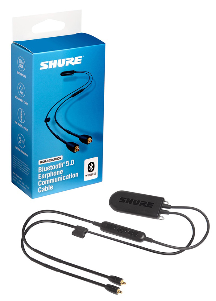 High-Resolution Bluetooth® 5.0 cable enables wireless communication and controls for Shure Sound Isolating™ Earphones and support for Qualcomm® aptX™ audio, aptX™ HD, aptX™ Low Latency, AAC and SBC audio codecs. Premium, wireless audio performance. A dedicated, premium headphone amplifier provides superior, high-fidelity audio quality with wireless capability. Support for multiple codecs. Qualcomm® aptX™ audio, aptX™ HD, aptX™ Low Latency, AAC, and SBC enable superior digital audio Featuring Bluetooth® 5 Wireless Technology. Bluetooth 5.0 is also backward compatible and will integrate with all Bluetooth sources. Up to 10 hours of play time. Battery allows up to 10 hours of play time with up to 350 hours of standby time and is rechargeable via USB MicroB cable. Compatible with all Shure detachable earphones with MMCX cable connectivity.