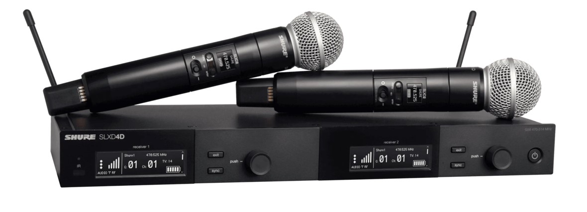 Featuring two legendary SM58® Cardioid Dynamic Microphone capsules on SLXD2 handheld wireless transmitters, the SLXD24D/SM58 provides transparent digital audio and rock-solid RF stability for lecture halls and live performances.