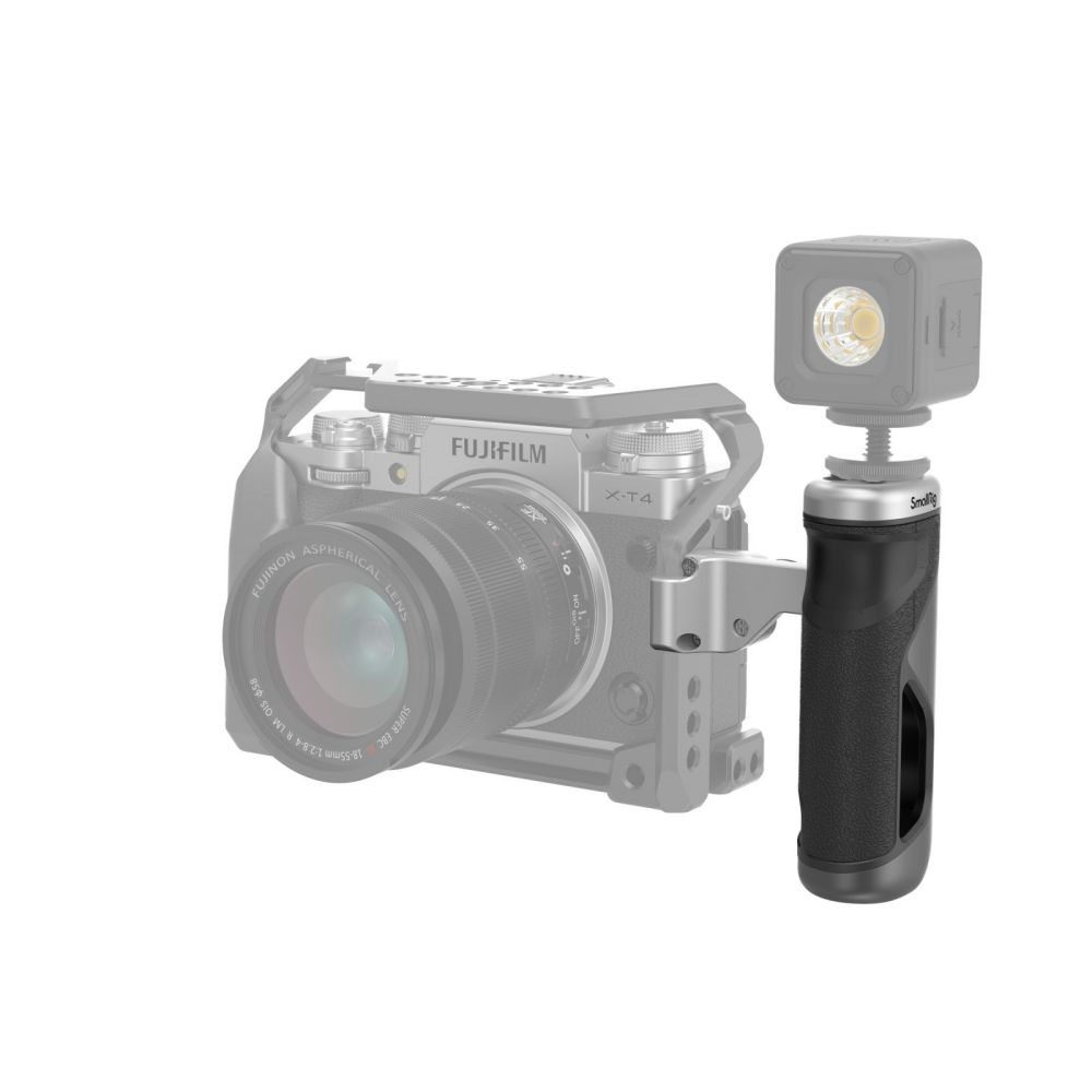 SmallRig Foldable Side Handle is designed to provide a comfortable grip and convenient storage. Unlike traditional ones, this foldable and compact handle can be put into narrow space or your pocket. Its innovative folding and quick-release design enable easy disassembly and assembly, significantly facilitating shooting and storage. The handle weighs about 108g, featuring lightweight, compact and portable. After adopting the convenient locking structure, it is safe and secure. It is available for left and right hand and features cold shoe mount and 1/4"-20 threaded holes at the top to attach various accessories.